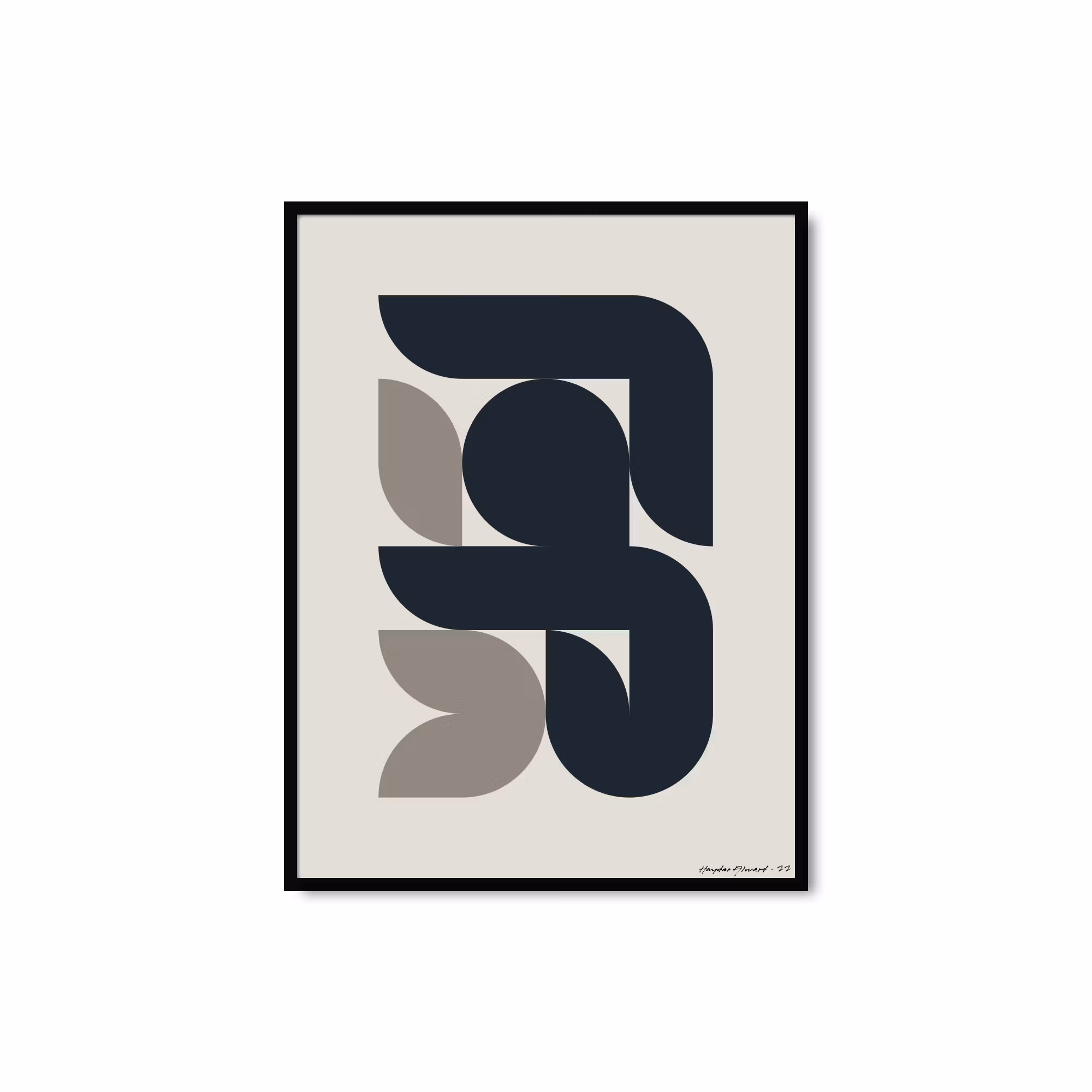 Grafisk illustration av ordet ('amal) som betyder hopp. Geometriska former i blått och grått på vit bakgrund. En stilren poster i minimalistisk anda. Passar perfekt till vardagsrummet i det moderna, avskalade hemmet.