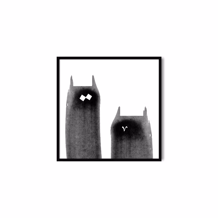 Svartvit poster med kattmotiv. Minimalistisk design som passar alla hem.
