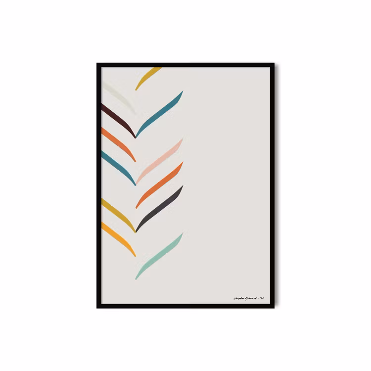 En upprepning och spegling av arabiska bokstaven A i en lekfull färgkombination. Denna poster passar bra som dekoration på en vägg i till exempel ett sovrum eller vardagsrum. Passar bra att kombinera med bokstaven M och L i samma serie för att stava till ordet (’amal) som är arabiska ordet för hopp.