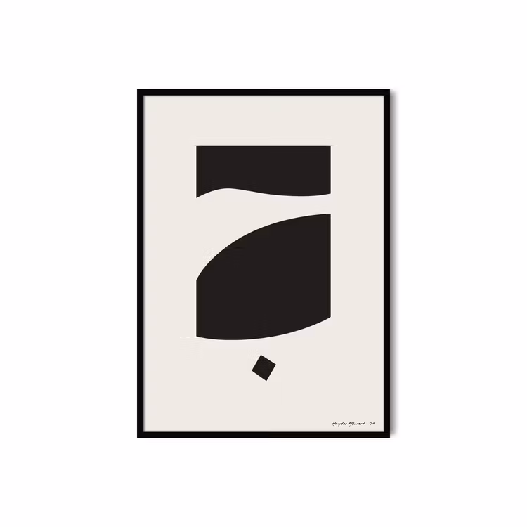 Grafisk illustration av ordet ('hubb) som betyder kärlek. Former i svart på en vit eller beige bakgrund. En stilren poster i minimalistisk anda. Passar perfekt till vardagsrummet i det moderna, avskalade hemmet.