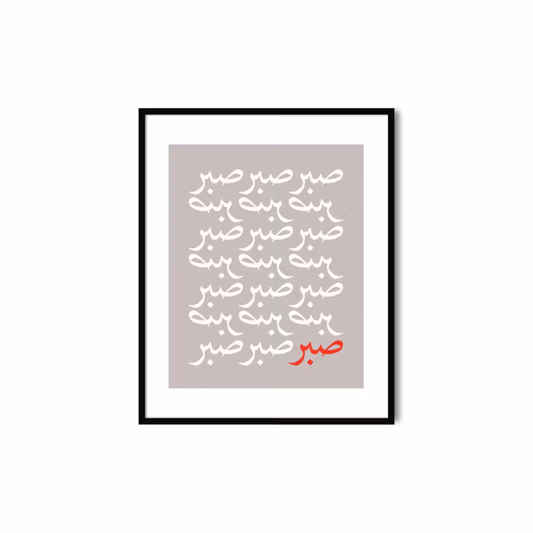 En upprepning av ordet ('sabr) som betyder tålamod på en beige bakgrund. Placera denna vackra postern i ditt hem som en påminnelse att tålamod är nyckeln till lycka och framgång. Postern har en vit kant runtom som snyggt ramar in motivet.